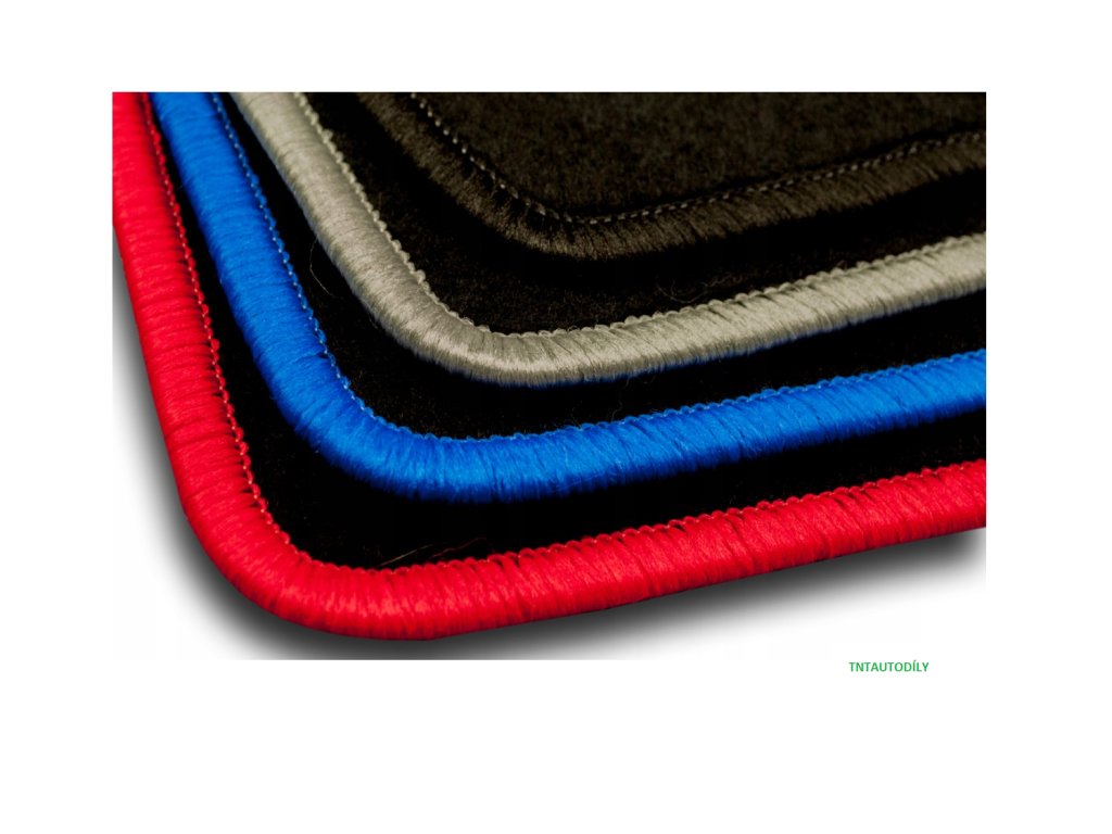 Níže představujeme sadu velurových koberců ve verzi "STANDARD" o hmotnosti 1750 g/m2, tloušťce cca 0,5 cm, lemovaných pevnou a odolnou přízí. Koberce jsou pečlivě navrženy a vyrobeny. přizpůsobené výše uvedenému tvaru podlahy vašeho vozu. Spodní strana koberečků je pokryta vrstvou hrubé gumy, aby se zabránilo jejich navlhnutí a posunutí. Na koberečku řidiče je našitá výztuž pro prodloužení životnosti karimatky.